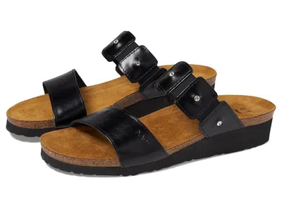 Naot Ashley - Women's Sandals : Black Madras Leather : ; The Ashley sandal is from the Naot Elegant Collection, which runs as a Narrow-to-Medium width. ; The Naot Ashley is a feminine slide sandal with rhinestone accents across the instep and gore for adjustability. Naot's anatomic cork latex footbed is wrapped in a pampering suede and molds to the shape of the foot with wear. American Podiatric Medical Association (APMA) Accepted for promoting good foot health. ; Leather upper and lining. ; Anatomical support distributes the weight of the body equally over the entire foot, massaging and releasing pressures caused by other parts of the body. Wide footbed allows the foot to rest and relax. ; Open toe silhouette. ; Flexible, shock-absorbent rubber outsole enables the foot to move gently and continuously. ; Imported. Measurements: ; Heel Height: 1 1 2 in ; Weight: 7 oz ; Platform Height: 1 in ; Product measurements were taken using size EU 37 (US Women's 6), width M. Please note that measurements may vary by size. | Naot Ashley Women's Sandals Black Madras Leather : EU 43 (US Women's 12) M
