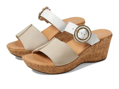 Naot Breezy - Women's Shoes : Beige Nubuck/Soft White Leather : ; A part of the Resort collection, the Naot Breezy sandals are designed to offer you style, comfort, and durability. The TPR midsole makes them a comfortable footwear choice. These slip-on wedge heels feature a leather upper with a buckle closure that offers a perfect fit. The cork and latex-covered leather footbed and padded leather lining offer all-day comfort. Perfect to match your party dresses and skirts, these wedge sandals are an ideal choice to make your fashion statement. ; Slip-on style. ; Open, round toe silhouette. ; Durable TPR outsole. ; Imported. Measurements: ; Heel Height: 2 3 4 in ; Weight: 9.6 oz ; Platform Height: 1 1 2 in ; Product measurements were taken using size EU 38 (US Women's 7), width M. Please note that measurements may vary by size. | Naot Breezy Women's Shoes Beige Nubuck/Soft White Leather : EU 42 (US Women's 11) M