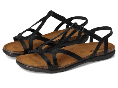 Naot Dorith - Women's Sandals : Black Raven Leather : ; The Dorith sandal is from the Naot Elegant Flats Collection, which runs as a Narrow-to-Medium width. ; The Sabrina sandal is from the Naot Elegant Flats Collection, which runs as a Narrow-to-Medium width. ; Feel the island breeze as you stride in the luxurious Naot Dorith sandal. The open-toe sandal boasts a soft leather upper with an adjustable hook-and-loop closure at the instep for a secure and personalized fit. ; Look fantastic all season long in the Sabrina sandal from Naot Footwear! ; Rich leather upper with side goring for easy slip-on style. ; Leather lining feels smooth and aids in drawing moisture away from your feet. ; Metal ornament and rivet accents. ; Suede-lined cork and latex footbed molds to your foot for ultimate comfort and support. ; Suede wrapped anatomic cork and latex footbed molds to the shape of the foot with wear. ; Flexible, shock-absorbent sole enables the foot to move gently and continuously. ; Features a .75 TPR outsole. ; Made in Israel. ; Imported. Measurements: ; Heel Height: 1 2 in ; Weight: 6 oz ; Product measurements were taken using size EU 37 (US Women's 6), width M. Please note that measurements may vary by size. | Naot Dorith Women's Sandals Black Raven Leather : EU 43 (US Women's 12) M
