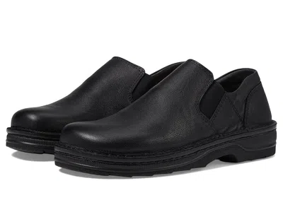 Naot Eiger - Men's Slip on Shoes : Soft Black Leather : ; The Eiger is from the Naot Men's Scandinavian Collection, which runs as a Medium width. ; Get settled in for the week with the Naot Eiger slip-on which features a leather upper, leather lining, and a removable insole. ; Easy slip-on style with dual goring for a comfortable fit. ; Polyurethane sole is extremely lightweight and durable. ; Imported. Measurements: ; Heel Height: 1 1 2 in ; Weight: 13 oz ; Platform Height: 1 in ; Product measurements were taken using size EU 41 (US Men's 8), width M. Please note that measurements may vary by size. | Naot Eiger Men's Slip on Shoes Soft Black Leather : EU 48 (US Men's 15) M