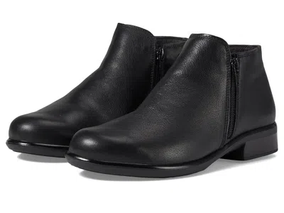 Naot Helm - Women's Boots : Black Water-Resistant Leather : ; The Helm is part of the Naot Aura Collection which runs as a Medium Width. ; Add a touch of popular style to your wardrobe with the Helm bootie by Naot. ; Leather and nubuck or leather and suede upper. ; Zipper closure. ; Padded technical lining for comfort, warmth, and moisture absorption. ; Removable, anatomic cork, and latex footbed is wrapped in microfiber and leather and molds to the shape of the foot with wear. ; Polyurethane sole with metal shank is extremely lightweight, durable, and abrasive to prevent slipping. ; This collection uses a hand-sewn strobel construction making it strong and extremely flexible. ; Imported. Measurements: ; Heel Height: 1 in ; Weight: 10 oz ; Product measurements were taken using size EU 40 (US Women's 9), width M. Please note that measurements may vary by size. | Naot Helm Women's Boots Black Water-Resistant Leather : EU 43 (US Women's 12) M, Leather/Suede