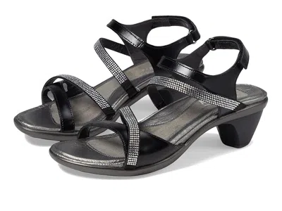 Naot Innovate - Women's Shoes : Black Madras Leather/Black Microfiber/Clear Rhinestones : ; The Innovate sandal is from the Naot Avant-Garde Collection, which runs as a Narrow-to-Medium width. ; Brighten the evening with the luscious Naot Innovate sandal. ; Leather upper features rhinestone embellishments. ; Features a hook-and-loop backstrap and padded front strap. ; Anatomic cork latex footbed is wrapped in leather with a microfiber center to prevent slipping and molds to the shape of the foot with wear. ; TPR outsole with metal shank for stability. ; Imported. Measurements: ; Heel Height: 2 1 4 in ; Weight: 8 oz ; Platform Height: 1 2 in ; Product measurements were taken using size EU 39 (US Women's 8), width M. Please note that measurements may vary by size. | Naot Innovate Women's Shoes Black Madras Leather/Black Microfiber/Clear Rhinestones : EU 42 (US Women's 11) M