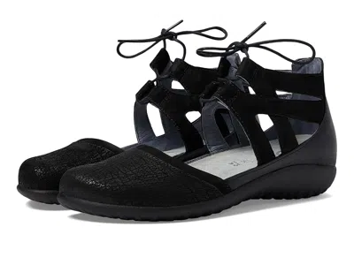 Naot Kata - Women's Shoes : Black Crackle Leather/Black Velvet Nubuck/Black Raven Leather : ; The Kata is part of the Naot Koru Collection which runs as a Medium Width. ; When your feet need a break from the everyday grind, transition to pure comfort in the Kata lace-up. ; Combination leather upper. ; Lace-up closure for an adjustable and secure fit. ; Leather and textile lining for breathability. ; Removable, suede-covered, cork and natural latex footbed for additional cushioning. ; Polyurethane outsole. ; Imported. Measurements: ; Heel Height: 1 1 4 in ; Weight: 9 oz ; Product measurements were taken using size EU 40 (US Women's 9), width M. Please note that measurements may vary by size. | Naot Kata Women's Shoes Black Crackle Leather/Black Velvet Nubuck/Black Raven Leather : EU 42 (US Women's 11) M, Leather/Nubuck