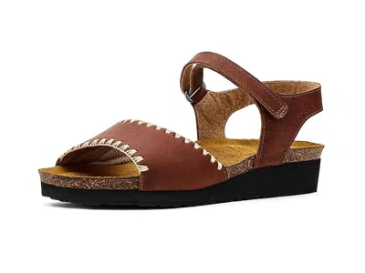 Naot Luna - Women's Wedge Shoes : Brandy Oily Nubuck : ; Introducing the Naot Luna - a stylish sandal that stands out with its striking contrast stitching detail for a modern, eye-catching look. Designed with an easy-to-use hook-and-loop ankle strap closure, Luna ensures a secure, customizable fit and effortless on-and-off wear. Crafted with Naot's signature anatomic cork and latex footbed wrapped in pampering suede, it molds to your foot over time, providing personalized comfort. APMA accepted and part of the Elegant Collection, Luna supports good foot health while delivering everyday style and ease. ; Leather upper and lining. ; Water-resistant. ; Arch support. ; Low-top style. ; Open toe design. ; Wedge heels. ; Ethylene vinyl acetate outsole. ; Imported. Measurements: ; Heel Height: 1 1 2 in ; Weight: 2 lbs ; Product measurements were taken using size EU 38 (US Women's 7), width M. Please note that measurements may vary by size. | Naot Luna Women's Wedge Shoes Brandy Oily Nubuck : EU 38 (US Women's 7) M, Leather