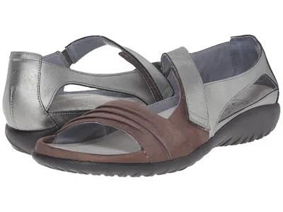 Naot Papaki - Women's Shoes : Shiitake Nubuck/Sterling Leather : ; The Papaki is part of the Naot Koru/Creation Collection which runs as a Medium Width. ; The Papaki blends easy comfort and creative style in this darling slip-on by Naot. ; Premium metallic leather and nubuck or leather and nubuck upper. ; Hook-and-loop strap for easy on and off. ; Soft leather lining. ; Removable, anatomic cork and latex footbed is wrapped in pampering suede and molds to the shape of the foot with wear. ; Arch support. ; Durable polyurethane outsole. ; Imported. Measurements: ; Heel Height: 1 in ; Weight: 8 oz ; Platform Height: 1 2 in ; Product measurements were taken using size EU 40 (US Women's 9), width M. Please note that measurements may vary by size. | Naot Papaki Women's Shoes Shiitake Nubuck/Sterling Leather : EU 43 (US Women's 12) M, Leather/Suede