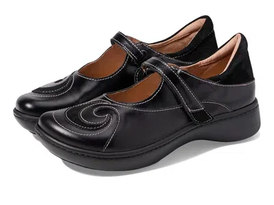Naot Sea - Women's Shoes : Black Suede/Shiny Leather : ; The Sea Mary Jane is from the Naot Shell Collection, which runs as a Medium to Wide width. ; This Naot Sea will makes waves in the comfort line. The Mary Jane silhouette is enhanced with swirl stitching at the leather upper for an elevated look while the adjustable hook-and-loop strap offers a personalized fit. ; Supersoft leather covered footbed is comfortable and absorbs perspiration. ; Naot shoes feature an anatomical removable footbed that replicates an image of an actual foot, much like footprints left when walking in sand. ; Anatomical, suede-covered cork and natural latex footbed provides additional comfort for all-day wear. ; Lightweight polyurethane outsoles for optimal shock absorption, flexibility and comfort. ; Imported. Measurements: ; Heel Height: 1 3 4 in ; Weight: 14 oz ; Platform Height: 1 1 4 in ; Product measurements were taken using size EU 36 (US Women's 5), width M. Please note that measurements may vary by size. | Naot Sea Women's Shoes Black Suede/Shiny Leather : EU 41 (US Women's 10) M