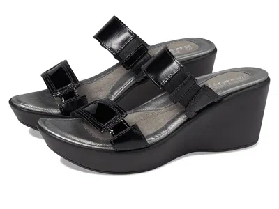 Naot Treasure - Women's Wedge Shoes : Black Madras Leather/Black Patent Leather : ; The Treasure sandal is from the Naot Impulse Collection, which runs as a Narrow-to-Medium width. ; Stand tall with confidence in the Naot Treasure wedge sandal. ; Gore at the instep for adjustability and a slightly padded upper. ; Choose your leather upper from various styles. ; Leather lining feels great on the foot. ; Smooth leather footbed provides cushioning support with moisture wicking properties. ; Flexible polyurethane wedge outsole offers long-lasting wear and amazing traction control. ; Lightweight TPR sole. ; Imported. Measurements: ; Heel Height: 2 3 4 in ; Weight: 9 oz ; Platform Height: 1 1 4 in ; Product measurements were taken using size EU 38 (US Women's 7), width M. Please note that measurements may vary by size. | Naot Treasure Women's Wedge Shoes Black Madras Leather/Black Patent Leather : EU 42 (US Women's 11) M