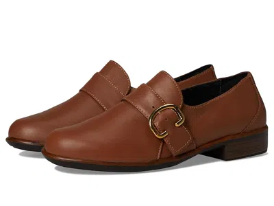Naot Viscol - Women's Flat Shoes : Carmel Leather : ; The Naot Viscol is a classic and timeless loafer complemented with a buckle on the front. The Viscol comes with Naot's removable, anatomic cork latex footbed for all-day comfort. The Aura Collection features polyurethane outsole with a metal shank which is extremely lightweight, durable abrasive to prevent slipping. This collection uses a hand-sewn Strobel construction making it strong and extremely flexible. ; Leather upper and lining. ; The Viscol is part of the Aura Collection which runs as a Medium Narrow width. ; Slip-on style. ; Round toes. ; Stacked heels. ; Imported. Measurements: ; Heel Height: 1 1 2 in ; Weight: 10.4 oz ; Product measurements were taken using size EU 38 (US Women's 7), width M. Please note that measurements may vary by size. | Naot Viscol Women's Flat Shoes Carmel Leather : EU 36 (US Women's 5) M