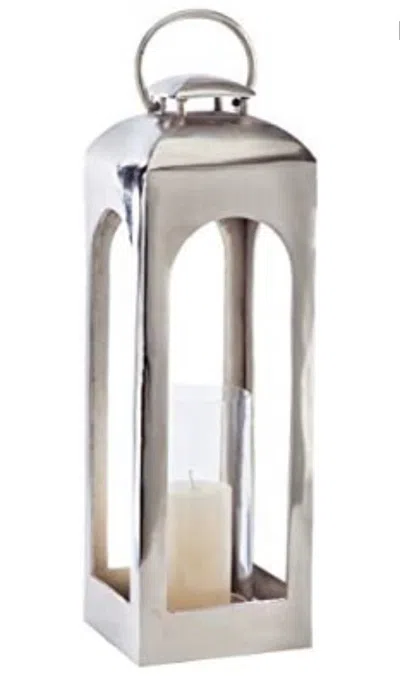 Halston Isabella Lantern, Large, Silver Decorative, brushed aluminum serve ware with a subtle shimmer and clean lines Polished, then distressed to treat a striking modern statement Interior decorative use only; Dust with soft cloth; Do not use harsh chemicals Dust with soft cloth Do not use harsh chemicals