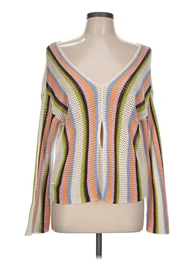 Native Youth Pullover Sweater, Size: Large. Item Details: Orange, Stripes Pattern, Plunge Neckline, Long Sleeve, Cut Outs, Women's Tops, 100% Cotton