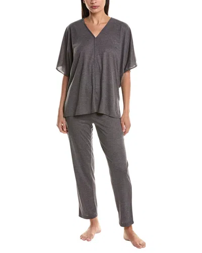 Indulge in luxurious comfort with the Natori 2pc Pajama Set. This stylish set in heather grey features a V-neck top with dolman sleeves and an accompanying elastic waist pant, perfect for lounging or sleeping in style. Made with a blend of 65% polyester and 35% rayon, this pajama set is both soft and comfortable. The top measures approximately 26 inches from shoulder to hem, while the inseam of the pant is approximately 28 inches. Whether you're relaxing at home or getting a good night's sleep, this Natori pajama set is the perfect choice. Machine washable and imported, it's easy to care for and will become a staple in your sleepwear collection. Available in a range of sizes, it's modeled here by someone who is 5'10 and wearing a size small. Please note that measurements may vary slightly by size. Add this stylish and comfortable Natori pajama set to your wardrobe today. About The Brand - From Lingerie To Lifestyle And Beyond.