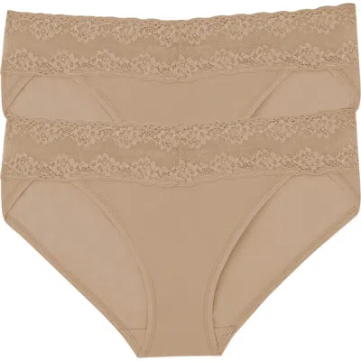 NATORI Bliss Perfection Lace Trim One Size Bikini Brief 2-pack In Cafe