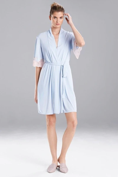 NATORI Enchant Short Sleeves Wrap Robe With Lace In Frosted Blue
