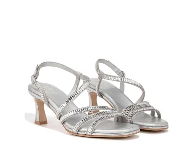 Naturalizer Galaxy 2 - Women's Sandals : Silver Fabric : Step into fashionable styles with the Naturalizer Galaxy 2 heel sandals. ; Strappy comfort sandals with all-day and all-night comfort. ; Satin fabric upper. ; Adjustable buckle closure on skinny ankle strap. ; Open square-toe silhouette. ; Contour+ Comfort technology for a premium fit and all-day comfort experience. ; New Contour footbed: an extra layer of padding for next-level comfort. ; Synthetic lining. ; Durable non-slip man-made outsole. ; Imported. Measurements: ; Heel Height: 2 3 8 in ; Product measurements were taken using size 7, width M (B). Please note that measurements may vary by size. | Naturalizer Galaxy 2 Women's Sandals Silver Fabric : 5 M (B), Satin/Textile
