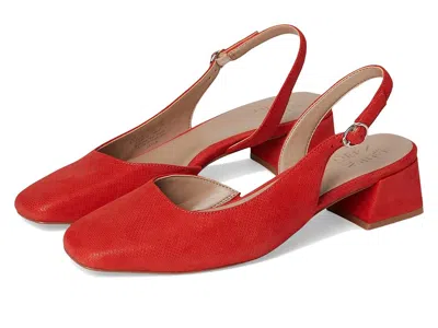 Naturalizer Jayla - High Heels : Maserati Red Suede : Create a stylish look wearing the Naturalizer Jayla sandals. Powered by REZORB for sneaker-level comfort, these are your new favorite slingback heels. Slipping into these low block heels always feels like a dream. Slingback dress shoes with D'Orsay side styling. It has a leather or metallic leather upper with a closed square toe design. Contour+ Comfort technology for a premium fit and all-day comfort experience. ; Faux leather lining and insole. ; REZORB responsive cushioning for shock absorption + impact protection. ; Adjustable buckle closure. ; WHY YOU'LL LOVE IT: Forever elegant silhouettes with all day wear, available in an inclusive range of sizes and widths. Designed to the contours of a woman's foot. The Beautiful Fit. Since 1927. ; Consciously Packaged: 100% of our shoe boxes are made of 80% recycled paper + soy-based ink. Designed using some environmentally preferred materials. ; Rubber outsole. ; Imported. Measurements: ; Heel Height: 1 in ; Weight: 8.5 oz ; Product measurements were taken using size 8.5, width M (B). Please note that measurements may vary by size. | Naturalizer Jayla High Women's Heels Maserati Red Suede : 8.5 M (B), Leather