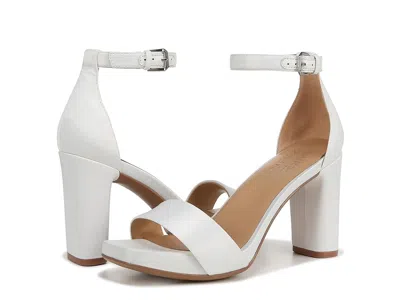 Naturalizer Joy - Women's Shoes : Pearl White Satin : The Naturalizer Joy platform sandal is always party ready! ; Comfortable in any situation. ; Fabric upper for superior wear. ; Leather, metallic leather or suede upper. ; Padded footbed for added comfort, support, and shock absorption. ; Polyurethane sole provides great all-day traction. ; Contemporary design for a variety of occasions. ; Padded footbed. ; Adjustable buckle closure. ; Contour+ Comfort technology. ; Square toe silhouette. ; Man-made outsole. ; Imported. Measurements: ; Heel Height: 3 1 4 in ; Product measurements were taken using size 7, width N (AA). Please note that measurements may vary by size. | Naturalizer Joy Women's Shoes Pearl White Satin : 9 N (AA), Leather/Suede/Textile