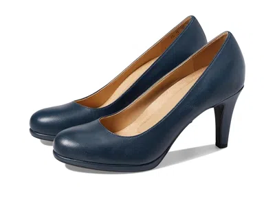 Naturalizer Michelle - High Heels : Classic Navy Leather : The Naturalizer Michelle offers simple yet sleek lines for a timeless and stunning look. ; Available in leather, suede, patent, or fabric uppers in a stylish silhouette. ; See drop down menu for colors and materials. ; Easy slip-on style. ; Smooth synthetic and textile lining. ; N5 Contour technology features dual density cushioning on a patented contoured footbed with arch support. All made with lightweight and breathable materials for superior comfort and support. ; Durable non-slip outsole to offer sure footing as you walk. ; Imported. ; to learn more about N5Contour technology. Measurements: ; Heel Height: 3 in ; Weight: 13 oz ; Platform Height: 1 2 in ; Product measurements were taken using size 8, width W (C). Please note that measurements may vary by size. | Naturalizer Michelle High Women's Heels Classic Navy Leather : 6 M (B)