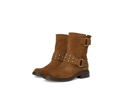 Naturalizer Optimus - Women's Motocross Boots : Dark Chestnut Stud Suede : Elegant edge. The Naturalizer Optimus moto boot with a studded leather strap delivers sleek street style. This mid-calf boot blends rugged Western charm with modern comfort, featuring bold buckles and classic stitching across a leather upper with a rounded toe. A zippered side closure ensures easy wear, while Contour+ Comfort technology delivers a premium fit with responsive cushioning for all-day support. ; Polyurethane lining and foam insole. ; Stacked block heel. ; Synthetic rubber outsole. ; Imported. Measurements: ; Heel Height: 1 3 8 in ; Weight: 8.48 oz ; Circumference: 11 7 12 in ; Product measurements were taken using size 7, width M (B). Please note that measurements may vary by size. | Naturalizer Optimus Women's Motocross Boots Dark Chestnut Stud Suede : 9 M (B), Leather