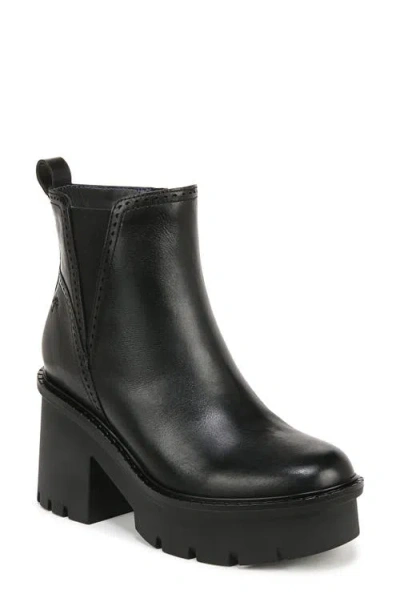 A chunky platform and block heel add scene-stealing height to a leather bootie fitted with a side zipper and gored elastic panel for easy wear. 4" heel; 1 1/2" platform Side zip closure with elastic gore inset Removable, cushioned insole with arch support Leather upper/synthetic lining and sole Imported