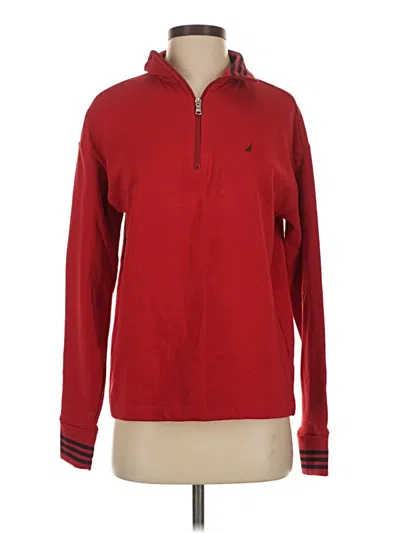 Nautica Pullover Sweater, Size: Small. Item Details: Red, Collared Neckline, Long Sleeve, Zippers, Women's Tops, Cotton/Polyester
