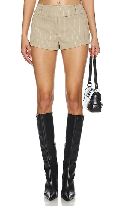 NBD Reade Micro Short in Beige. - size XL (also in M, XS) NBD Reade Micro Short in Beige. - size XL (also in M, XS) Self: 63% polyester 33% viscose 4% elastane Lining: 55% polyester 45% viscose. Made in China. Dry clean only. Zip fly with hook and bar closure. Back welt pockets. Crepe fabric with tonal metallic stripes. Item not sold as set. Shorts measure approx 10 in length Size XS waist circumference measures approx 31. NBDR-WF87. ACF445 S24. For the girl who's the life of the party. For the girl who's always up for a glass of champagne. For the girl who likes to keep her closet as filled with as her social calendar, there's NBD. The young-at-heart line features dresses that every it girl covets and pieces that are sexy, flirty, fun and now.