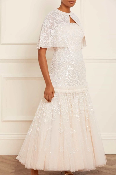 NEEDLE & THREAD Regal Rose Gloss Short Open Cape In Champagne