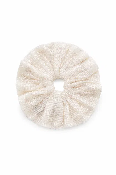 Description & Details NEW SEASON NEEDLE & THREAD EXCLUSIVE. The Sequin Scrunchie in Cream. A playful yet elegant accessory featuring shimmering sequins. Perfect for pairing with coordinating gowns or as a delicate finishing detail. - Sequin stretch mesh - 90% Polyester, 10% elastane - Made in India. Care Advice - To freshen between wears spot clean with lukewarm water. Responsibly Sourced - 100% of the sequins used for this design are made from upcycled materials using self-generated plastic waste. - 100% of the tulle fabric used for this design is made from recycled plastic. PACKAGING At Needle & Thread, we're constantly taking steps to improve our sustainability practices, from product design to packaging. Our eco-conscious box and tissue paper used to package your order are FSC-approved, and are both recyclable. The stickers used on the tissue paper and on the box can both be recycled. FAIRLY MADE Needle & Thread are now proud to partner with Fairly Made® to enhance our supply chain transparency. This partnership will help us to meet our social and environmental goals whilst sharing full visibility of how our products are made. We are excited to share our traceability journey with you very soon.