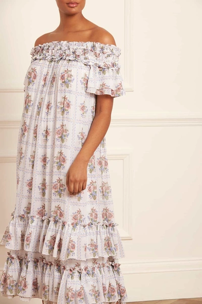 NEEDLE & THREAD Tiled Blooms Chiffon Off-shoulder Ankle Gown In Multi