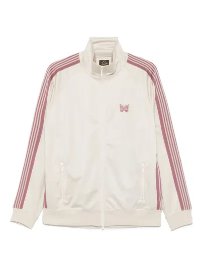 Sweatshirt in beige polyester, high collar, double zip closure, long sleeves, embroidery logo on chest, two front zip closure, ribbed cuffs and bottom, 100% polyester, Made in Japan, the models is 1. 91 and wears size XL