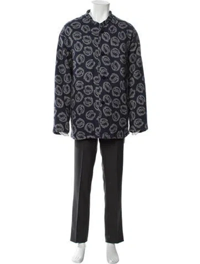 Needles Wool Overcoat Blue Printed Woven Lining Patch Pockets Fit: Outerwear by Needles typically fit true to size. | Needles Wool Printed Overcoat in Blue, Men's XL