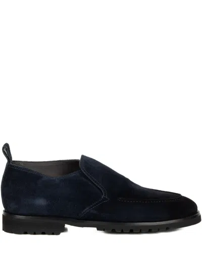 blue suede upper pull-tab at the rear tonal stitching slip-on style round toe