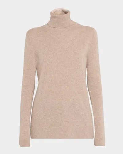 NEIMAN MARCUS Cashmere Basic Turtleneck Top In Brown