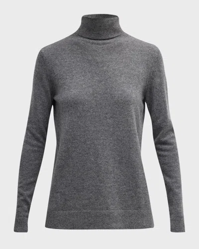 NEIMAN MARCUS Cashmere Basic Turtleneck Top In Heather Grey
