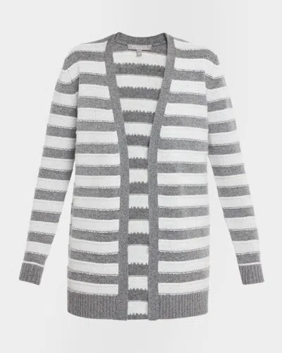 NEIMAN MARCUS Cashmere Striped Open-front Cardigan In Multi