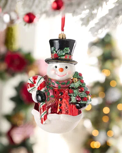NEIMAN MARCUS Elegant Snowman With Candy Cane And Tree Christmas Ornament In Multi