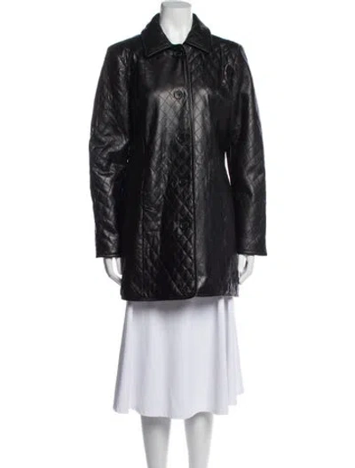 Neiman Marcus Leather Coat Blue Pointed Collar Short Slit Pockets & Button Closure Fit: Coats by Neiman Marcus typically fit true to size. | Neiman Marcus Leather Coat in Blue, Women's L