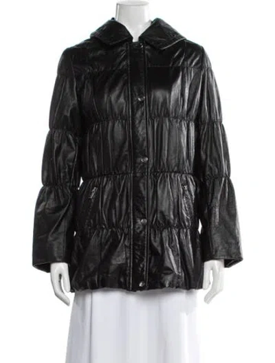 Neiman Marcus Leather Jacket Black With Hood Stand Collar Zip Pockets & Zip Closure Fit: Jackets by Neiman Marcus typically fit true to size. | Neiman Marcus Leather Jacket in Black, Women's XS