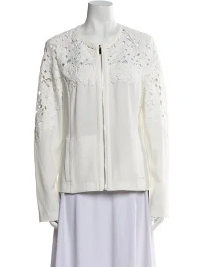 Neiman Marcus Leather Jacket Neutrals Tweed Pattern Lace Trim Embellishment & Collarless Slit Pockets & Zip Closure Fit: Jackets by Neiman Marcus typically fit true to size. | Neiman Marcus Leather Tweed Pattern Jacket in Neutrals, Women's L