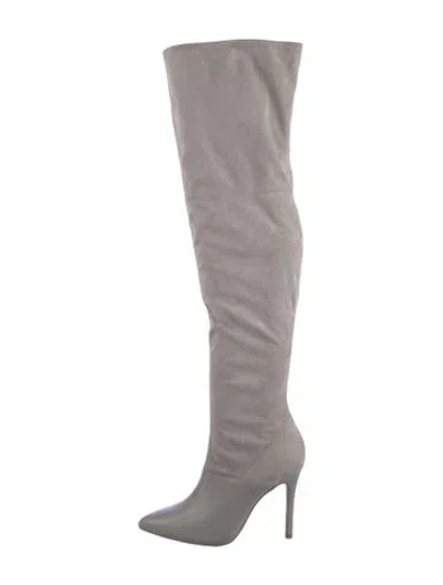 Neiman Marcus Suede Over-The-Knee Boots Grey Semi-Pointed Toes Platform Includes Box | Neiman Marcus Suede Boots in Grey, Women's US 8 | 8