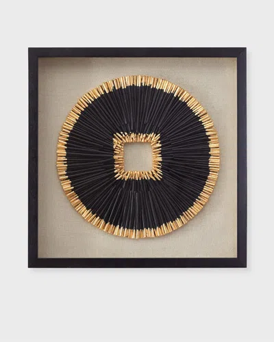 This framed wall decor features painted dowels with handapplied gold leaf arranged on a textured background. Handcrafted of glass, polystyrene, and wood Overall, approx. 23"Sq. x 1.8"D Can hang horizontally or vertically Dring hanging hardware Wipe clean Weight, 12.0 lbs Imported Boxed weight, approximately 14.0 lbs