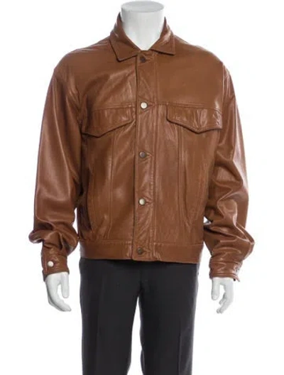 Neiman Marcus Utility Jacket Brown Jacquard Lining Spread Collar Flap Pockets Fit: Outerwear by Neiman Marcus typically fit true to size. Unfortunately, due to restrictions, this item may not be eligible for shipping in all areas. | Neiman Marcus Utility Jacket in Brown, Men's L
