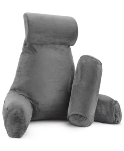 Soft Velour Cover Reading Backrest Pillow Set, Extra Large In Charcoal Stone Gray
