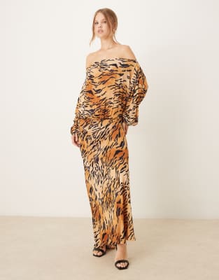 Plisse Off-shoulder Maxi Dress In Multi