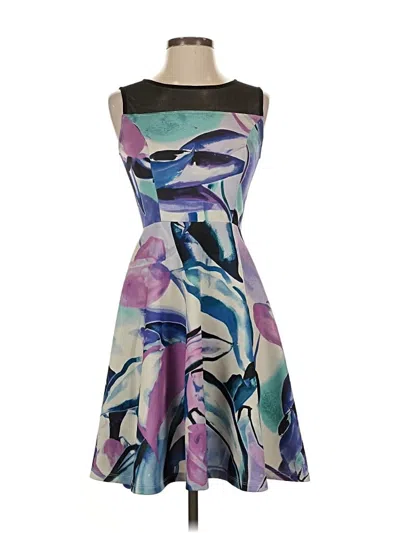 New York & Company Cocktail Dress, Size: 4. Item Details: Purple, Graphic Pattern, Fit & Flare, Boatneck, Knee Length, Sleeveless, Print, Women's Dresses