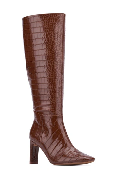 NEW YORK AND COMPANY Isabelle Croc Embossed Knee High Boot In Brown Croco