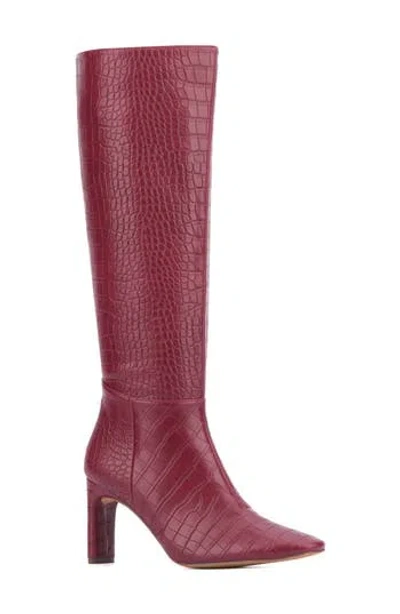 Isabelle Croc Embossed Knee High Boot In Wine Croc