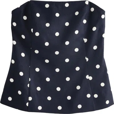 Show off your shoulders in this crisp linen-kissed top made in a figure-sculpting fit and covered in party-perfect dots. 17 1/2" length (size 8) Hidden back-zip closure Strapless Lined 66% Livaeco viscose, 32% linen Livaeco viscose is finished with closed-loop processing and uses 2/3 less water than comparable fibers Machine wash, line dry Imported