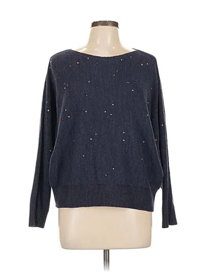 Nic + Zoe Pullover Sweater, Size: Large. Item Details: Blue, Stars Pattern, Crew Neck, Long Sleeve, Glitter, Women's Tops, Cotton/Polyester