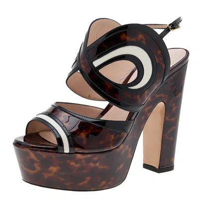 Brown Marble Print Patent Leather Platform Block Heel Sandals In Blue