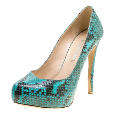 Pre-owned Two Tone Python Leather Platform Pumps Size 38 In Blue